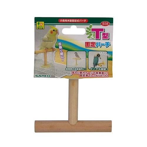 小鳥用木製固定式パーチ!T型固定パーチ(B38)[三晃商会]