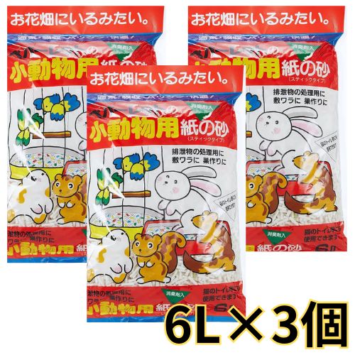 ウサギ モルモット ハムスター リス 小鳥 ネコ用紙製の床敷小動物用紙の砂 6L×3袋 ペパーレット