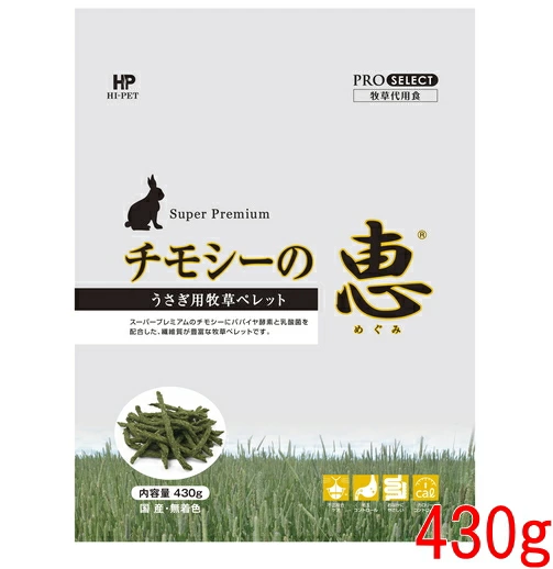 ウサギ モルモット チンチラ デグーなど草食性小動物用牧草ペレット チモシーの恵 430g ハイペット