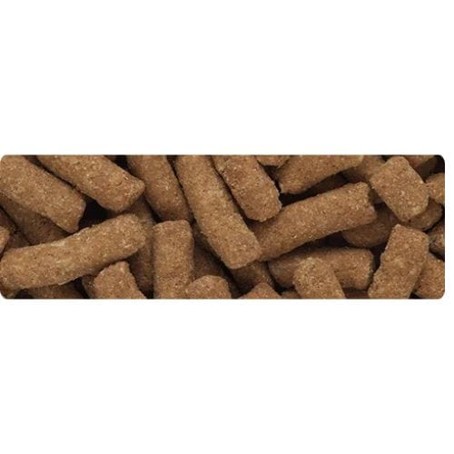 原材料:肉類(チキン、チキンミール)、コーンミール、乾燥ビートパルプ、乾燥ビール酵母、アミノ酸類(メチオニン、タウリン)、ビタミン類(塩化コリン,E,C,イノシトール,B5,B2,A,B1,B6,B3,K,葉酸,D3,ビオチン,B12)、ミネラル類(Na,Cl,K,Fe,Zn,Mn,Cu,I)