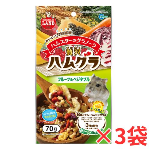 3個セットハムスター・リスなどの小動物用おやつ!ハムスターのグラノーラ贅沢ハムグラ フルーツ&ベジタブル×3個[マルカン]